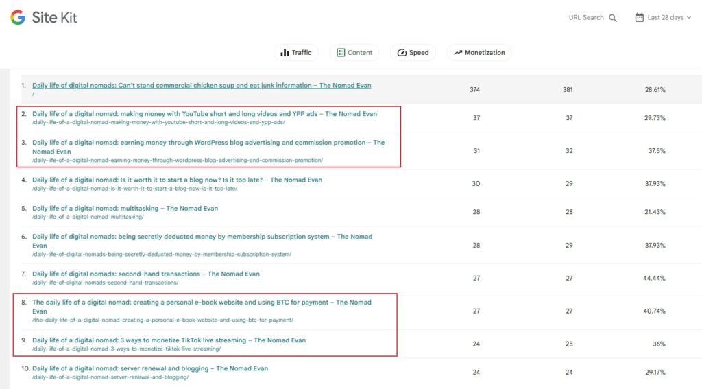 In Google Analytics, half of the clicks and visits are about how to make money and how to generate advertising revenue.